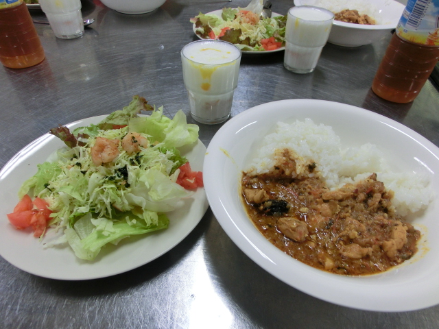 ニンニクの風味が食欲をそそるエビのサラダや、甘くて濃厚なマンゴーラッシーも大好評!